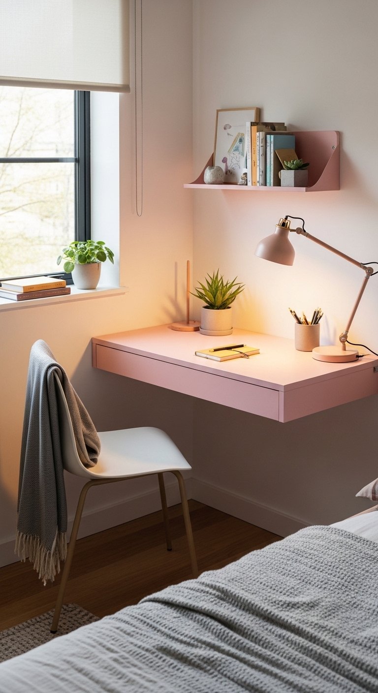 19. Add Pink Floating Desk for Multi Use Space