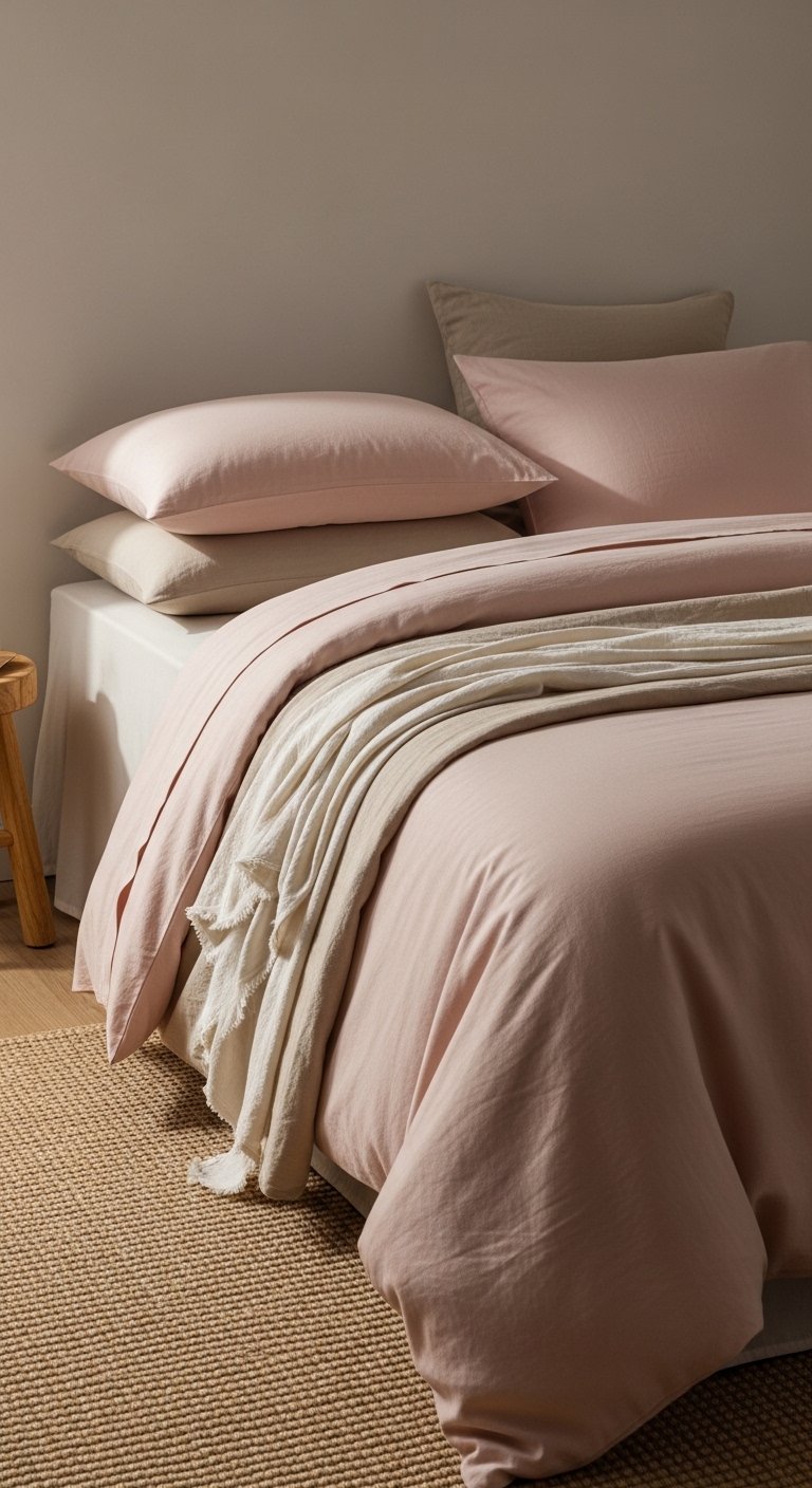 3. Layer Soft Pink Bedding with Airy Neutrals