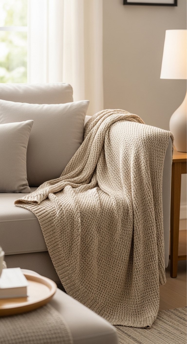 Adding a throw blanket is a simple way to make your living room feel soft and inviting. Choose fabrics like cotton, fleece, or light knit for comfort and style. Go for colors that match your pillows, such as warm beige, soft rust, or muted green.Drape the throw casually over the arm of your sofa or fold it neatly across one side. This creates a relaxed and styled look without effort. You can also layer two thin throws for added texture.This small detail adds depth to your seating area and makes the room feel lived-in and cozy. It is a budget-friendly trick that instantly upgrades the overall vibe.