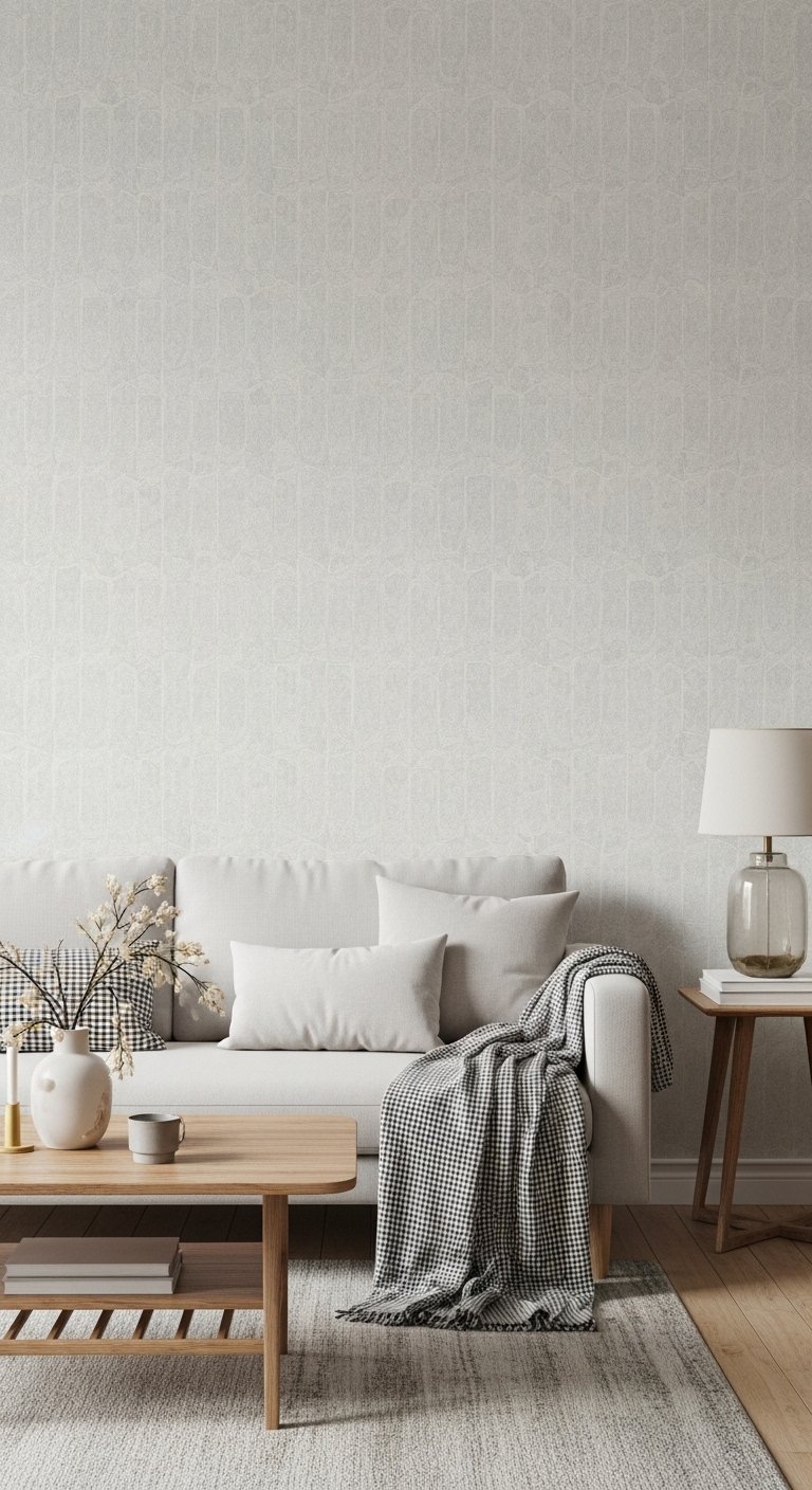 Peel-and-stick wallpaper is an easy way to create a stylish accent wall. Choose soft patterns like floral, geometric, or textured designs. Light tones work best for a calm and modern feel.Apply it behind your sofa or TV area to create a focal point. Make sure the pattern is not too bold, so it blends well with your furniture.This idea adds depth and personality to your space without permanent changes. It is perfect for renters and anyone who wants a quick update.