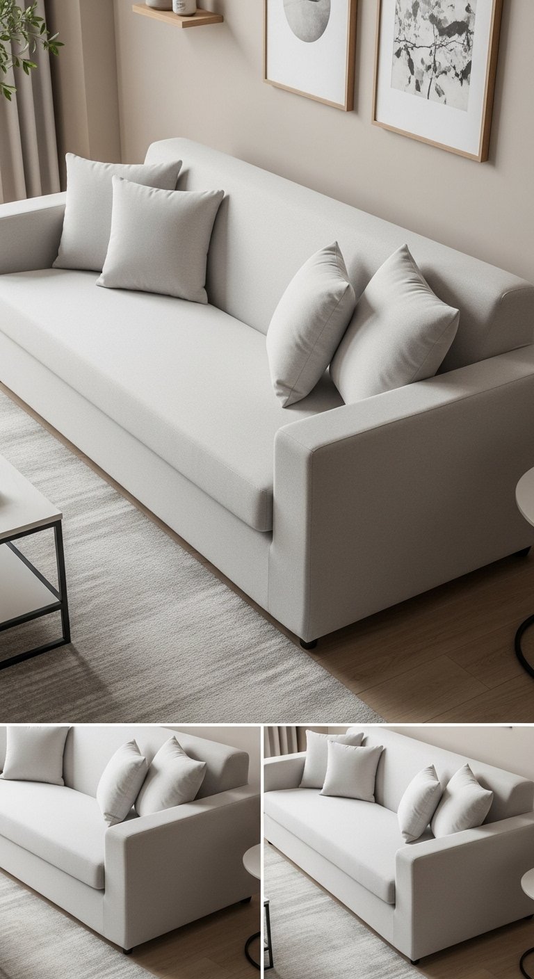 If your sofa or chairs look outdated, you do not need to replace them. Use slipcovers to give them a fresh look. Choose neutral shades like cream, gray, or soft brown for a clean and modern feel.Stretchable fabric covers fit easily and look neat. Add matching cushions to complete the look. This creates a uniform and polished style.Slipcovers are also easy to wash, which keeps your living room looking fresh all the time. This idea saves money and gives your furniture a brand-new appearance without much effort.