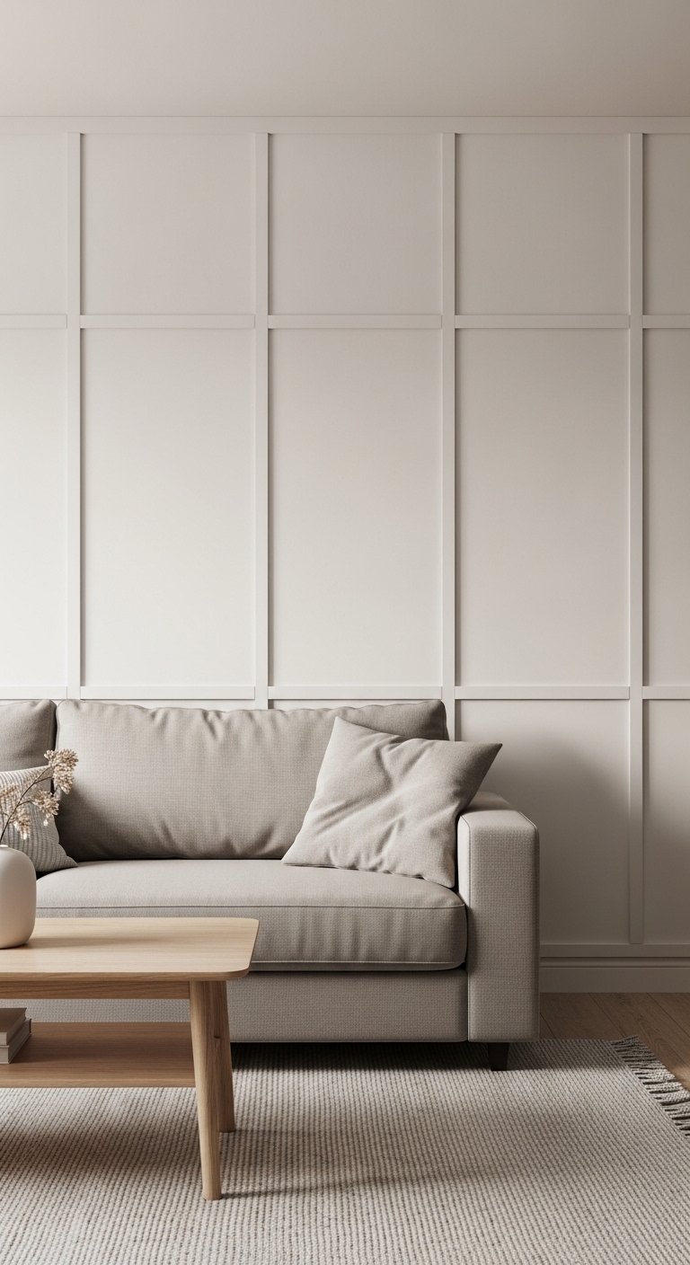 You can give your living room a high-end feel with a simple DIY wall panel design. Use thin wood strips or ready-made molding to create clean shapes on one wall. Paint everything in one soft color like warm white, light gray, or muted beige for a seamless look.Keep the pattern simple, such as vertical lines or large rectangles. This adds depth without making the wall feel busy. Place this feature behind your sofa to create a strong focal point.Good lighting will enhance the texture, so let natural light fall across the wall during the day. This idea looks expensive but costs very little. It is a smart way to add structure and elegance using basic materials.
