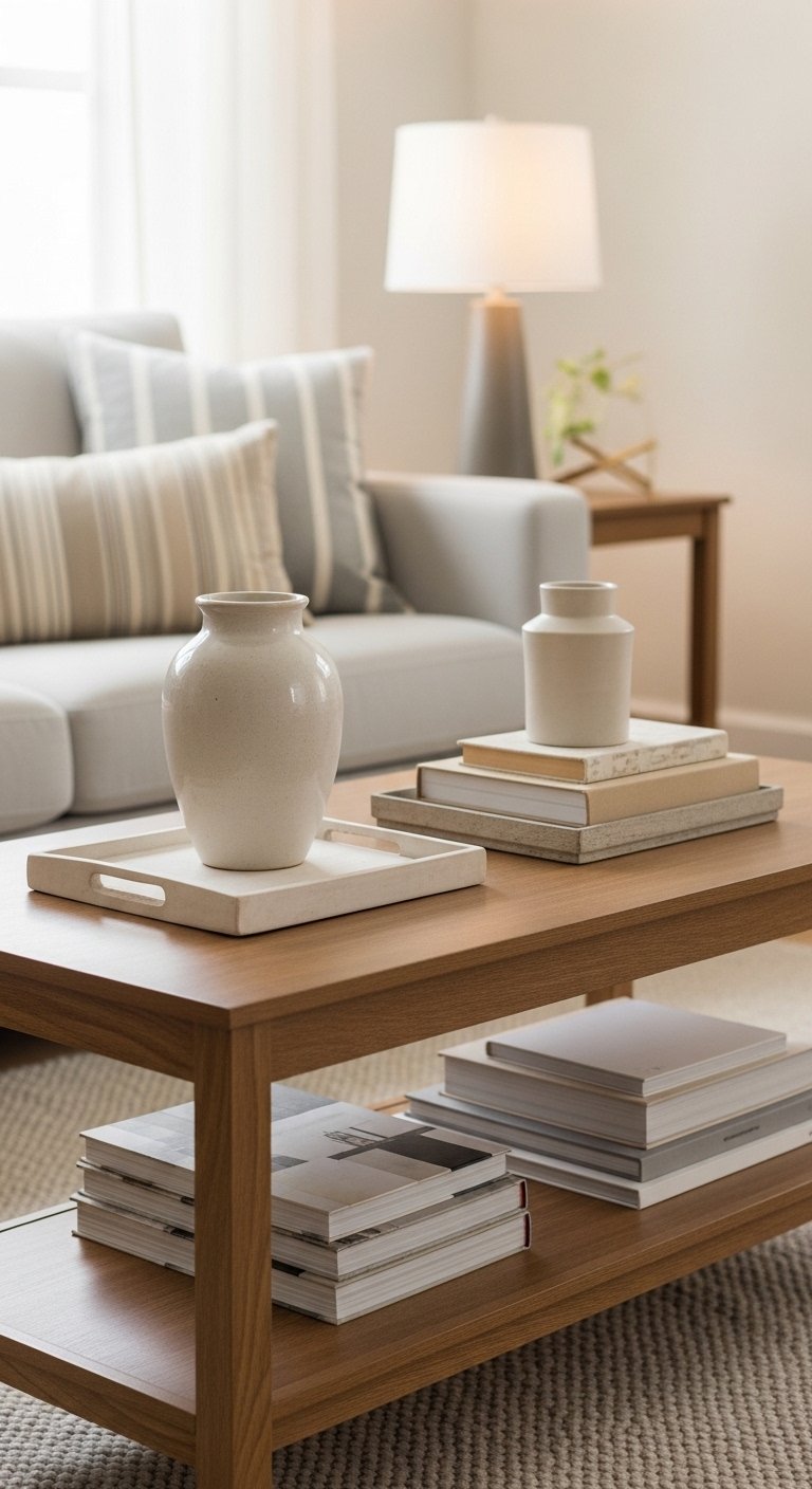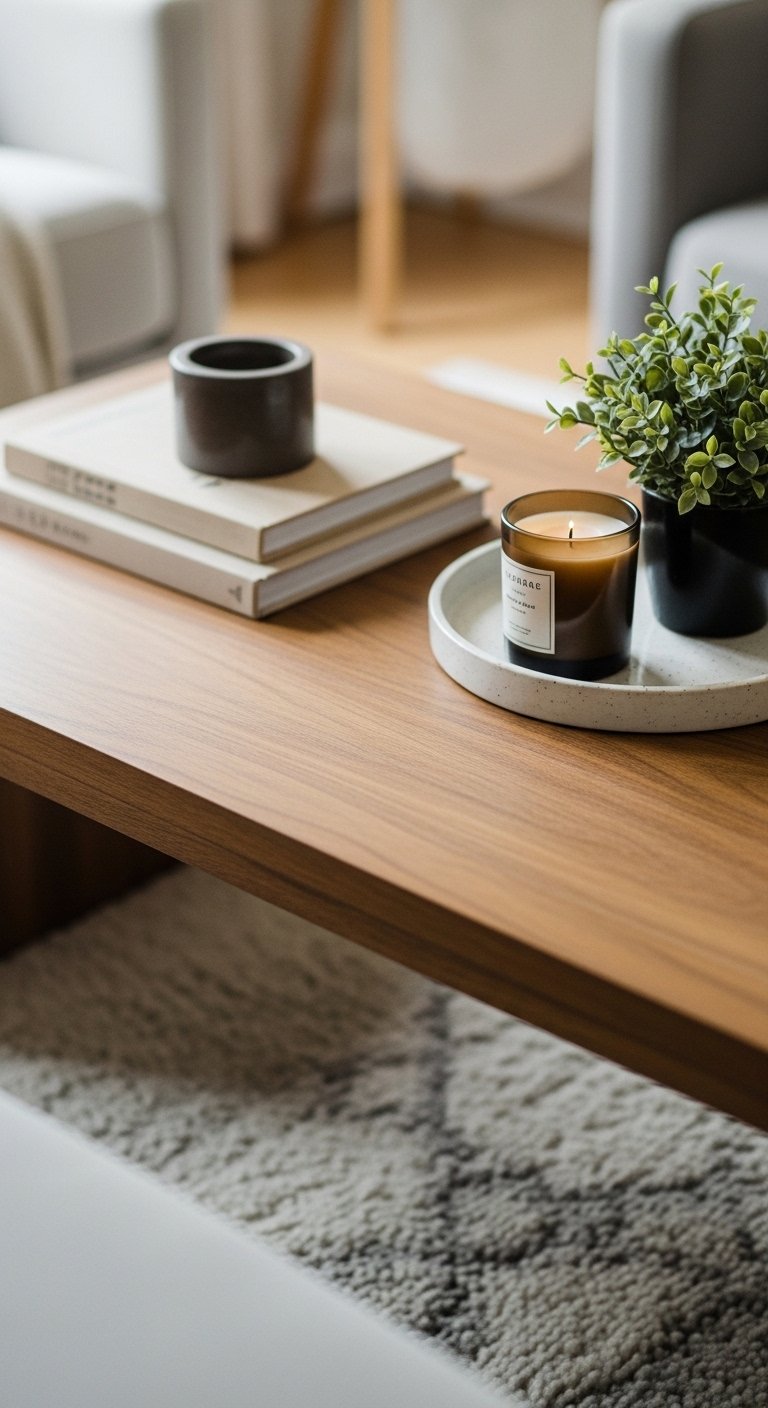 Your coffee table is a key styling spot. Keep it simple but intentional. Use a stack of books, a small plant, and a decorative tray.Choose items in matching tones to keep the look clean. For example, combine wood, ceramic, and glass for a natural feel. Avoid overcrowding the table. Leave some empty space for balance.You can also add a scented candle for a cozy touch. This setup looks neat, stylish, and easy to update anytime. Small details like this make a big visual impact.