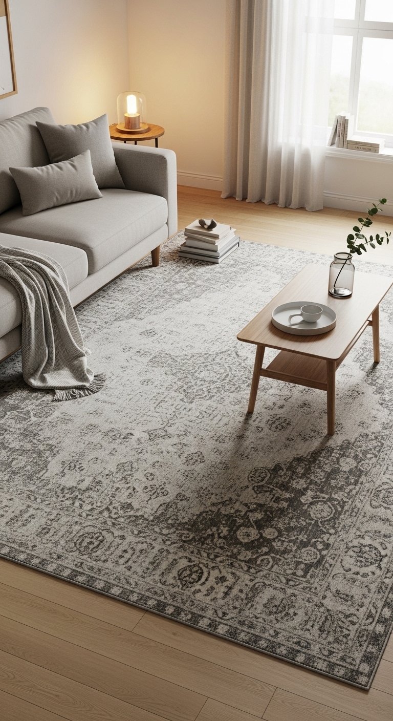 A rug can define your living room and pull everything together. Choose a large rug that fits under your main furniture pieces. This makes the room feel complete and well-designed.Go for simple patterns like soft geometric shapes or faded vintage prints. Neutral tones with a hint of color work best for a calm look. If your room feels plain, a rug with subtle texture can add interest without being too bold.Layering is also a smart trick. Place a smaller patterned rug over a larger neutral one. This adds depth and style. A good rug makes the entire room feel warmer and more inviting instantly.