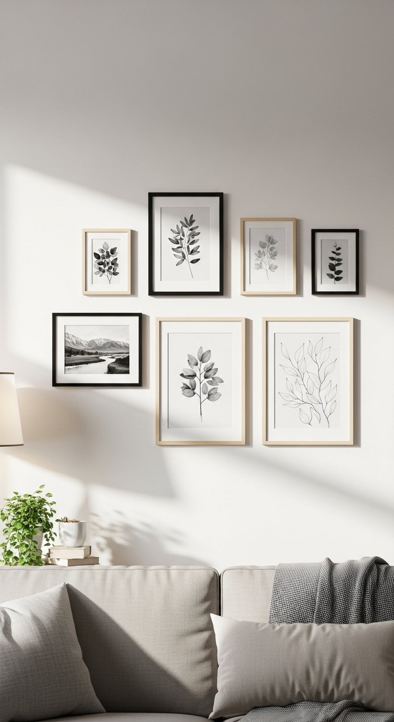 Turn an empty wall into a stylish feature using photos and art. Print your favorite memories or download affordable digital artwork. Use simple frames in black, white, or wood tones for a clean look.Lay out your design on the floor before hanging. Mix different sizes but keep the spacing even. This creates a balanced and organized feel.Add one or two unique pieces like a quote print or a small mirror for variety. This wall becomes a focal point that feels personal and creative. It adds character without needing expensive decor.