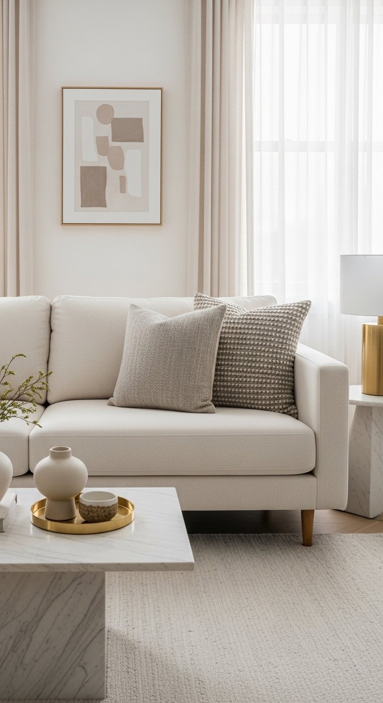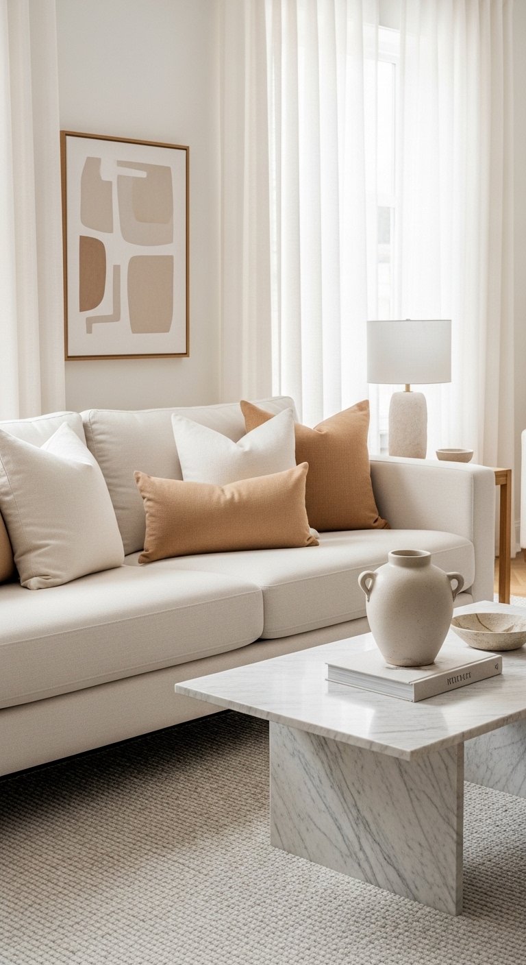 21. Cream Sofa with Soft Marble Accents for Quiet Elegance