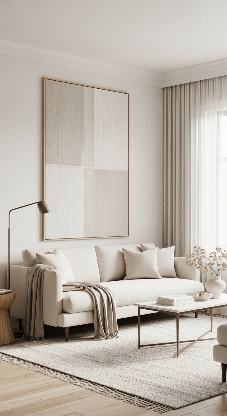 19. Cream Sofa with Vertical Artwork for Height and Elegance