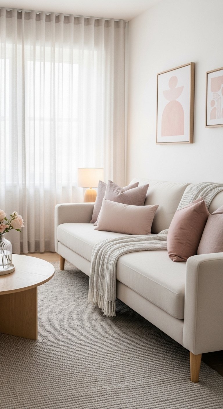 4. Cream Sofa with Soft Blush Accents for Gentle Warmth
