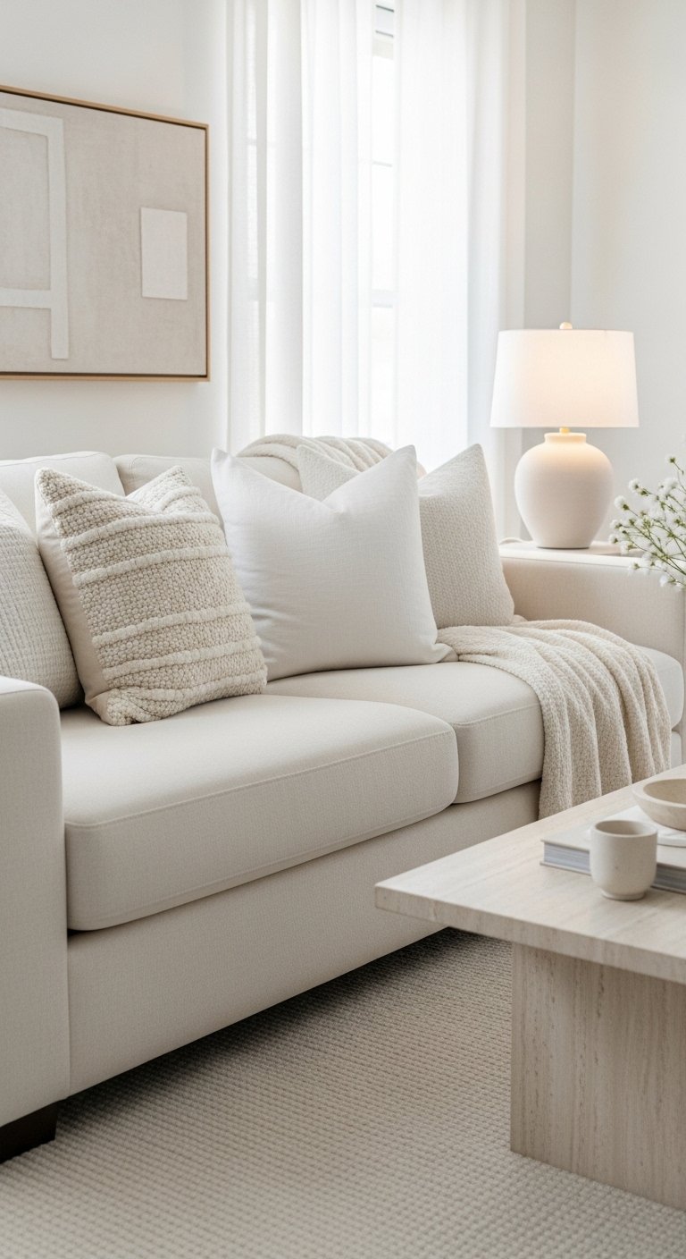 5. Cream Sofa with Textured White Layers for a Light Luxe Look