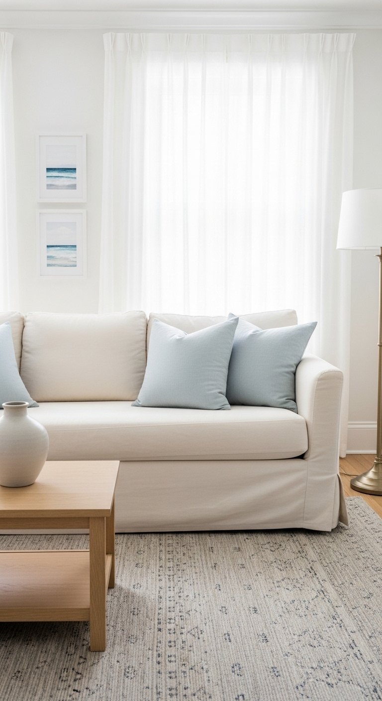 6. Cream Sofa with Light Blue Accents for Airy Freshness