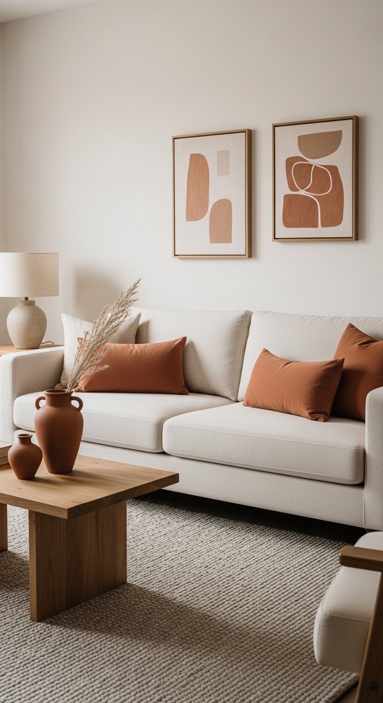 7. Cream Sofa with Earthy Clay and Terracotta Details