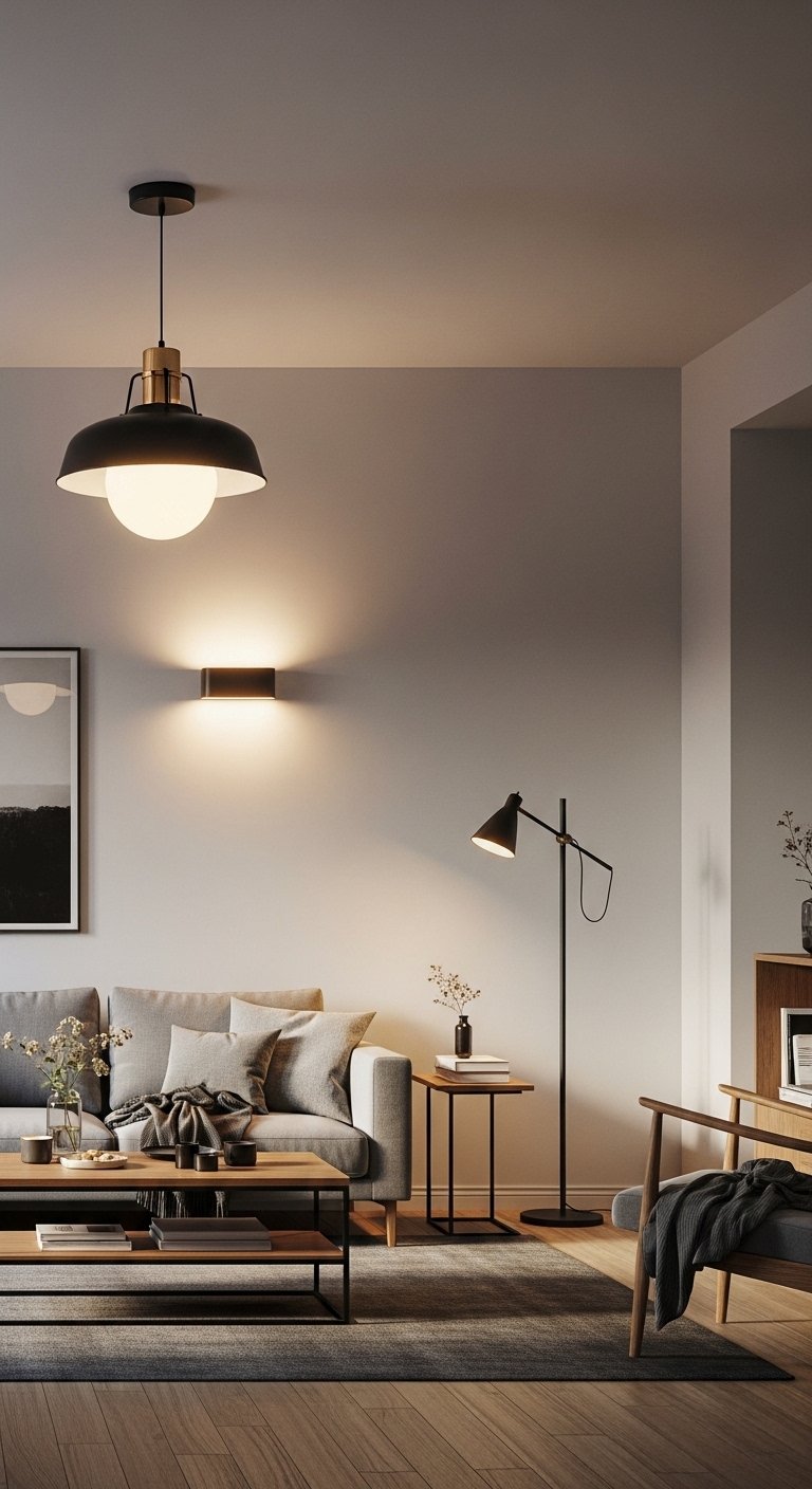 Modern living rooms shine when multiple layers of lighting are used. Combine overhead fixtures, floor lamps, wall sconces, and hidden LED strips to create adaptable moods. A dimmable chandelier sets the tone for evenings, while a sleek floor lamp adds targeted task lighting. Lighting strategically placed behind furniture or artwork enhances textures and creates dramatic shadows. Layered lighting not only improves functionality but also gives the space a magazine-ready, chic look.