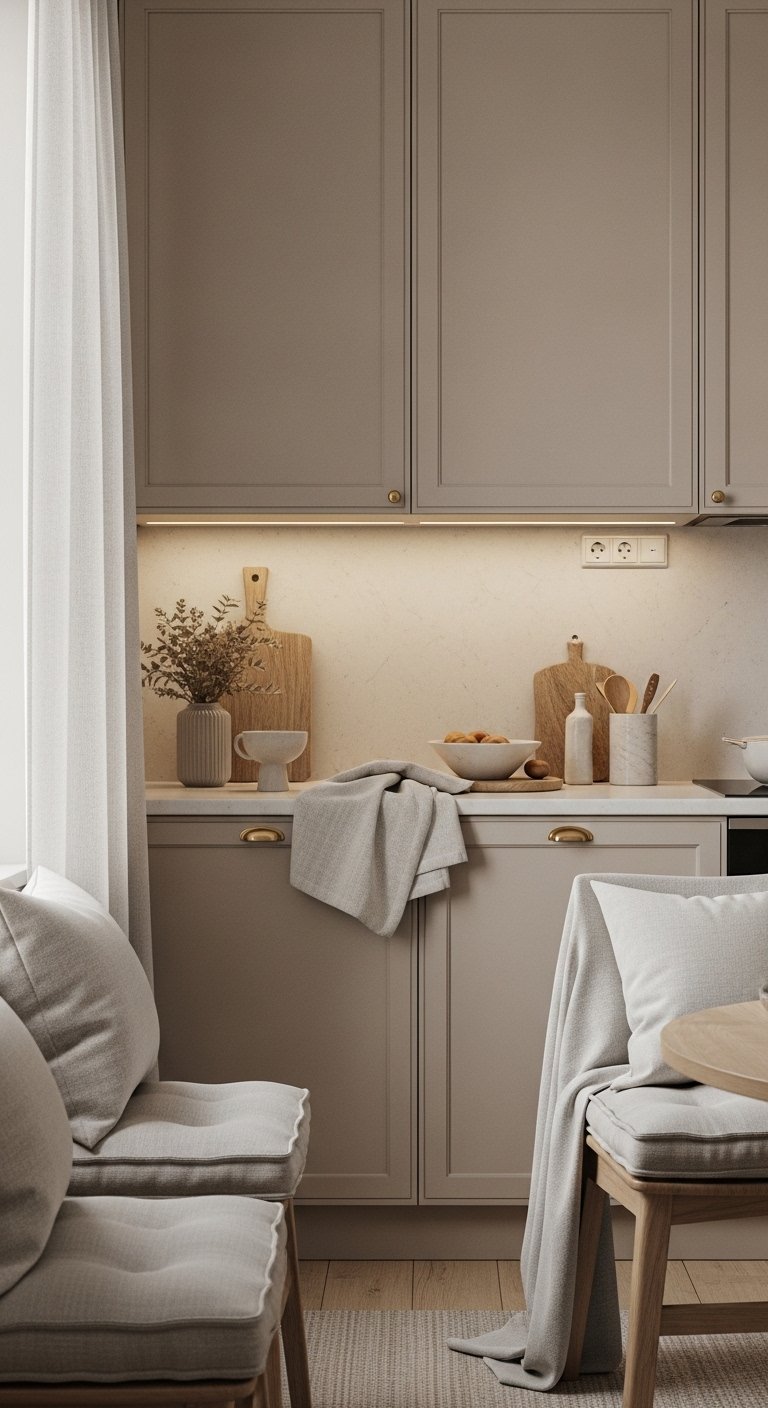 12. Beige Kitchen with Textured Linen and Fabric Elements