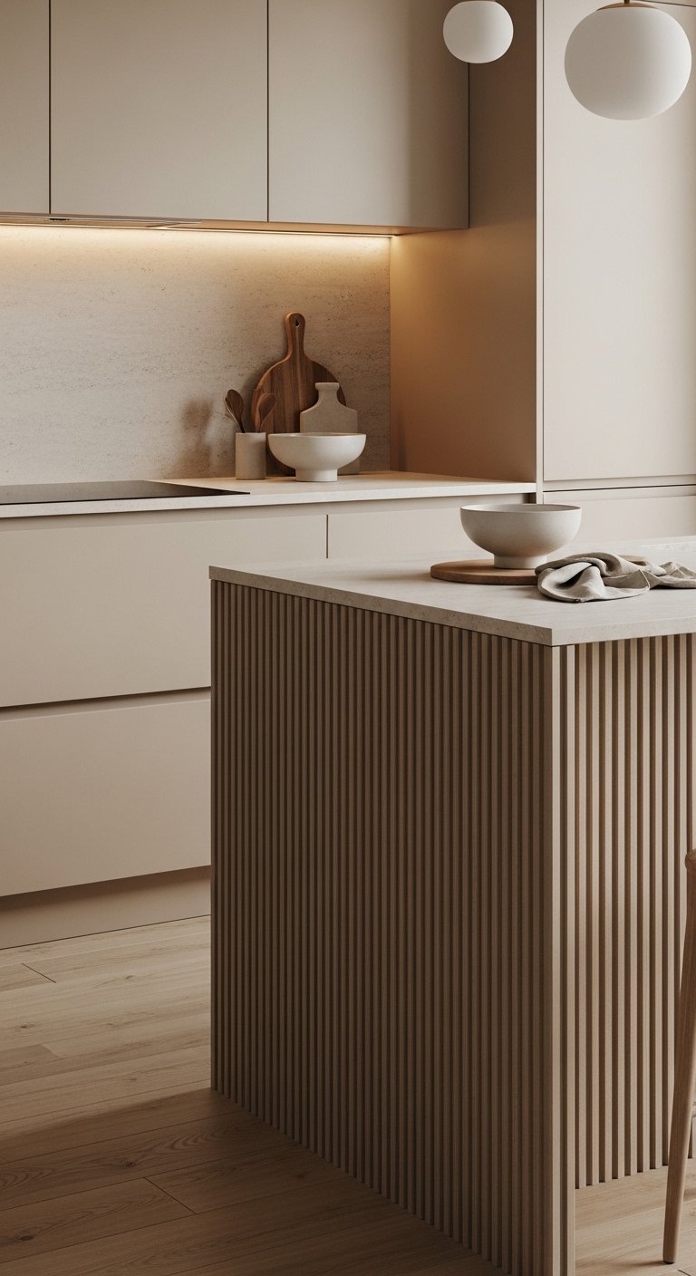 21. Beige Kitchen with Fluted Wood and Ribbed Textures