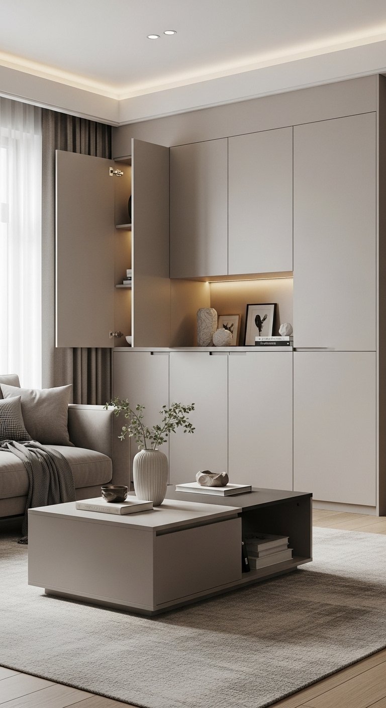 Luxury spaces always feel calm and uncluttered. Hidden storage helps you achieve this without losing function.Choose furniture with built-in storage like ottomans, coffee tables, or TV units. Keep everyday items out of sight to maintain a clean look.Use closed cabinets with smooth finishes instead of open shelves for larger storage. This reduces visual noise.Keep surfaces simple with only a few decorative items. This allows textures and materials to stand out more.A clutter-free space feels more open, more relaxing, and more refined. This is one of the easiest ways to create a true luxury feel in your living room.