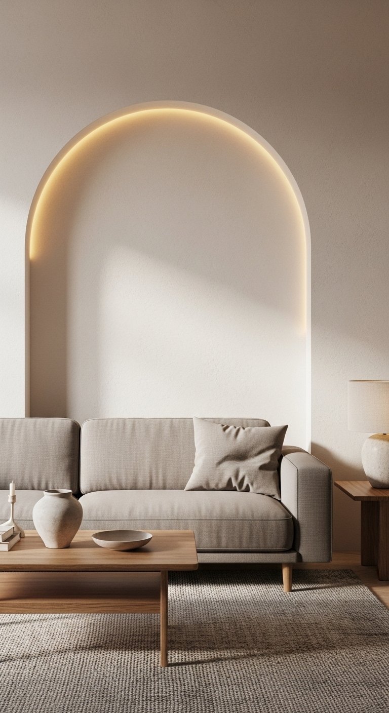 Straight lines can feel sharp, but curves bring softness and flow. Adding an arch or curved wall detail creates a gentle, high-end look.Use arches for doorways, shelving, or even as a design feature behind your sofa. Paint them in slightly different shades of the same color to create depth without strong contrast.Pair these curves with soft furniture and rounded décor pieces to keep the theme consistent. Add warm lighting to highlight the shapes and create soft shadows.This idea works because it feels organic and modern at the same time. It adds character without overwhelming the space.