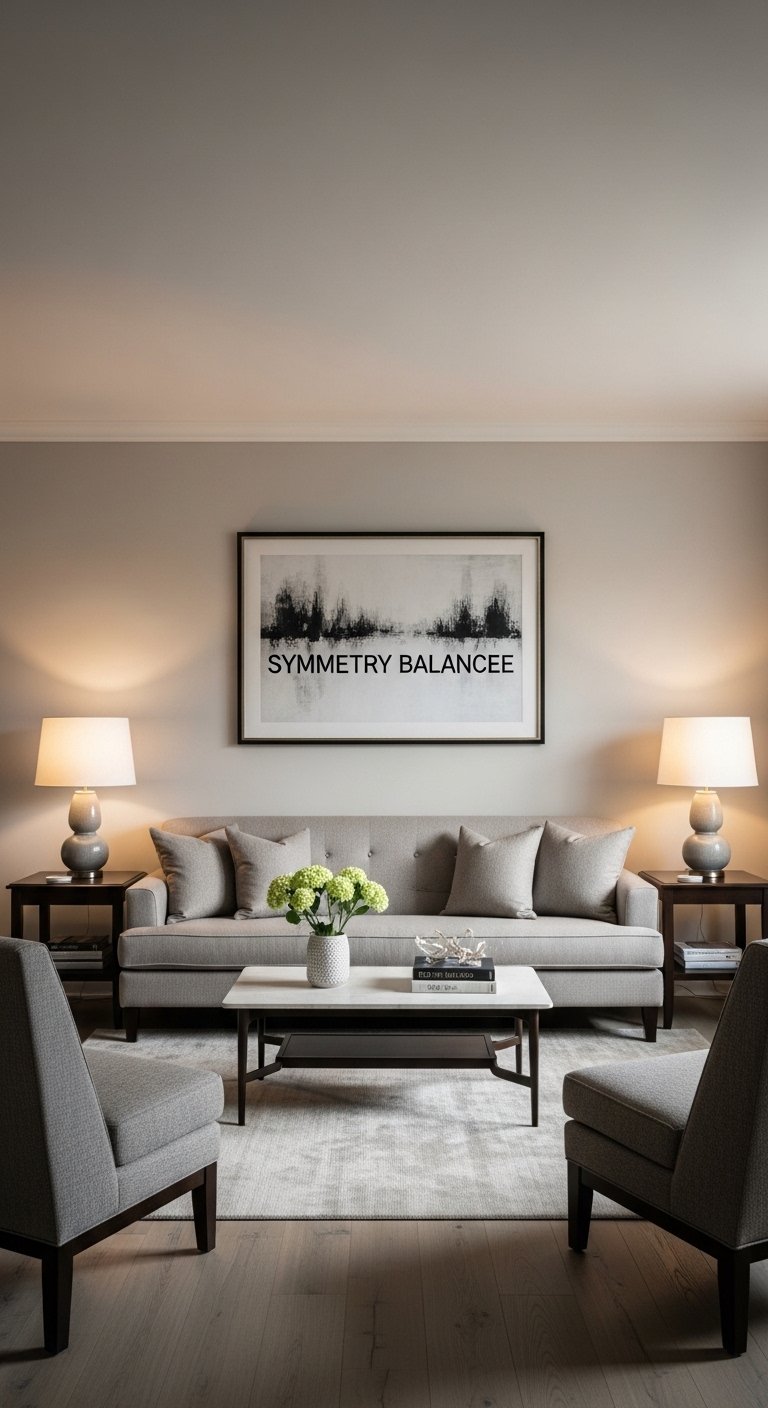 Symmetry creates order and calm, which feels naturally luxurious. Place matching lamps, chairs, or tables on each side of your main focal point.Keep the layout balanced but not too perfect. Add small variations like different cushions or slightly varied décor to keep it relaxed.Use a central piece like a sofa or coffee table to anchor the arrangement. This helps everything feel connected.Lighting plays a key role here. Matching lights on both sides create a warm and inviting glow.This idea blends structure with comfort, giving your living room a polished yet livable feel.