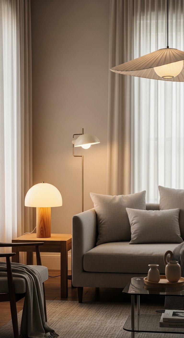 Luxury living rooms never rely on one light source. Instead, they use layered lighting to build depth and mood. Start with a soft ceiling light, then add table lamps, floor lamps, and even hidden LED strips.Use warm white light to create a cozy and rich atmosphere. Place a table lamp on a marble or wood side table and a floor lamp behind a chair to create balance. Hidden lighting under shelves or behind panels adds a soft glow that feels expensive.Mix materials like brass, glass, and ceramic for your lighting fixtures. This adds texture without adding clutter.The key is to control brightness. Use dimmers so you can adjust the mood from bright and fresh to soft and relaxing. This flexibility makes your living room feel more refined and thoughtfully designed.
