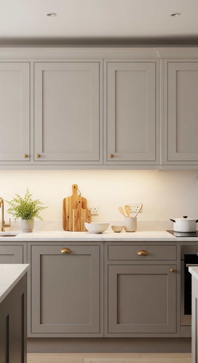 Simple, sleek handles or handleless push-to-open cabinets maintain a clean, modern aesthetic. Minimalist hardware prevents visual clutter on cabinet surfaces, which is crucial in compact kitchens. Choose finishes like brushed nickel, matte black, or brass to add subtle elegance without overpowering the space. Pairing minimalist hardware with neutral or monochromatic cabinetry enhances the perception of openness. On Pinterest, kitchens with clean lines and minimal hardware feel sophisticated and spacious, proving that small details make a big visual difference.