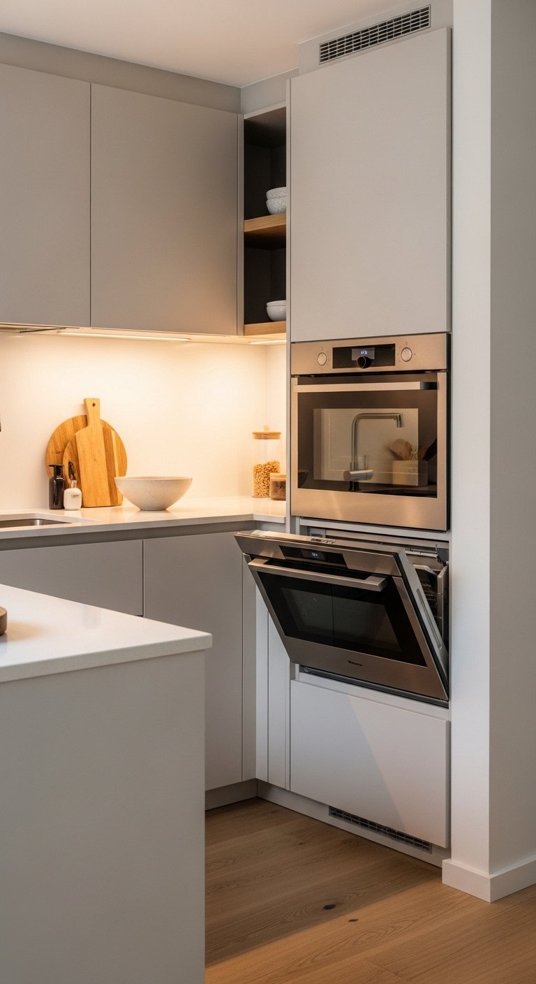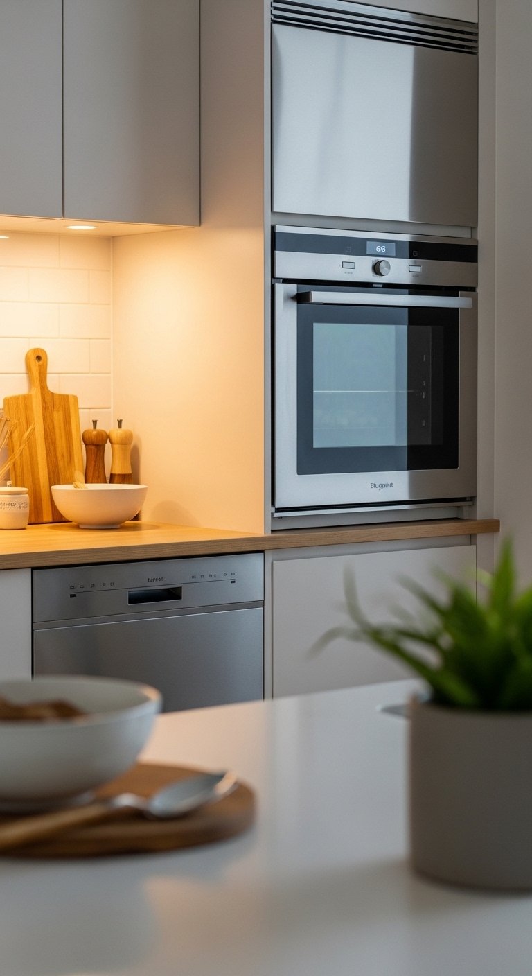 Replacing bulky appliances with slim, space-saving models immediately frees up room and creates a modern, uncluttered look. Narrow refrigerators, slim dishwashers, and compact ovens fit into tight layouts while maintaining full functionality. Pairing slim appliances with matching cabinetry ensures a cohesive, seamless appearance. Light tones or reflective finishes enhance the feeling of openness. In small kitchens, choosing appliances based on footprint rather than only capacity is a Pinterest-worthy strategy for combining modern design with practicality.