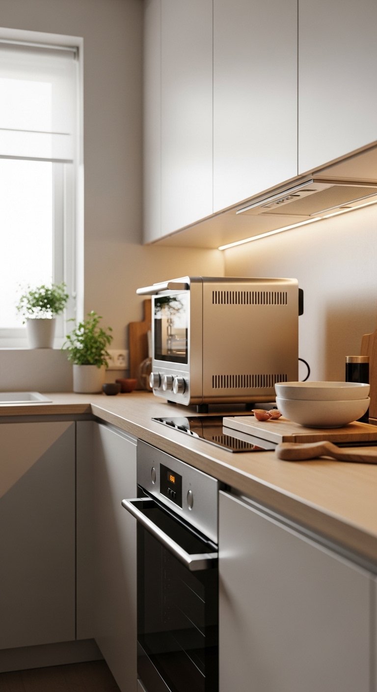 Investing in compact appliances that serve multiple purposes—like a convection oven that also air-fries, or a washer-dryer combo in an open utility nook—saves counter and floor space. Sleek, modern designs in stainless steel or matte finishes maintain a clean, cohesive look while keeping essential tools close at hand. By reducing clutter and combining tasks into fewer machines, the kitchen feels less crowded and more functional. This strategy ensures your small kitchen remains modern, practical, and visually light—a perfect balance of style and efficiency for Pinterest inspiration.