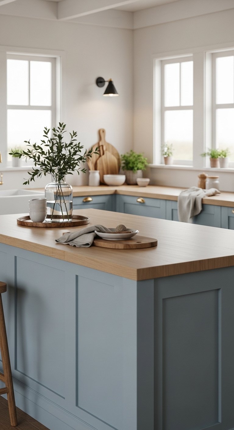 14. Coastal-Style Kitchen Island with Mixed Materials