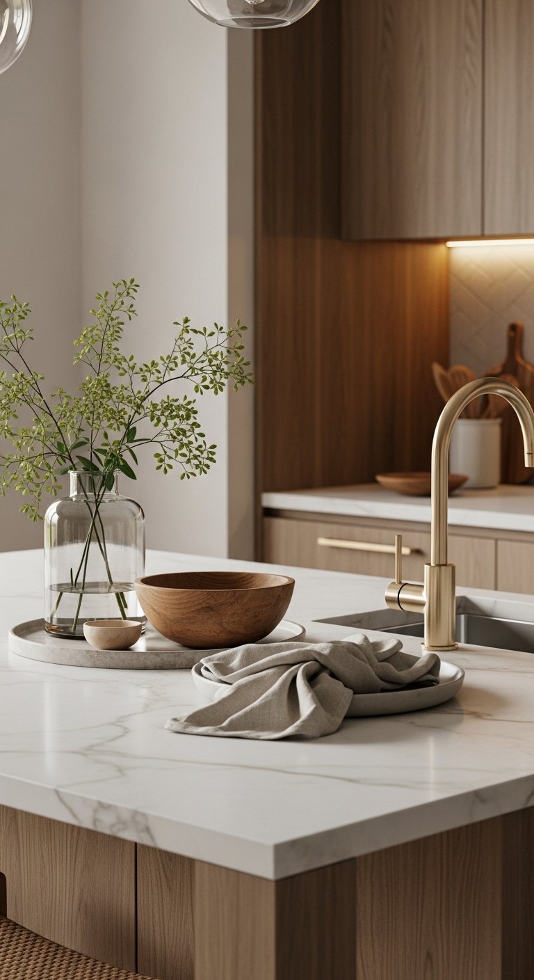9. Marble or Quartz Countertops with Soft Veining