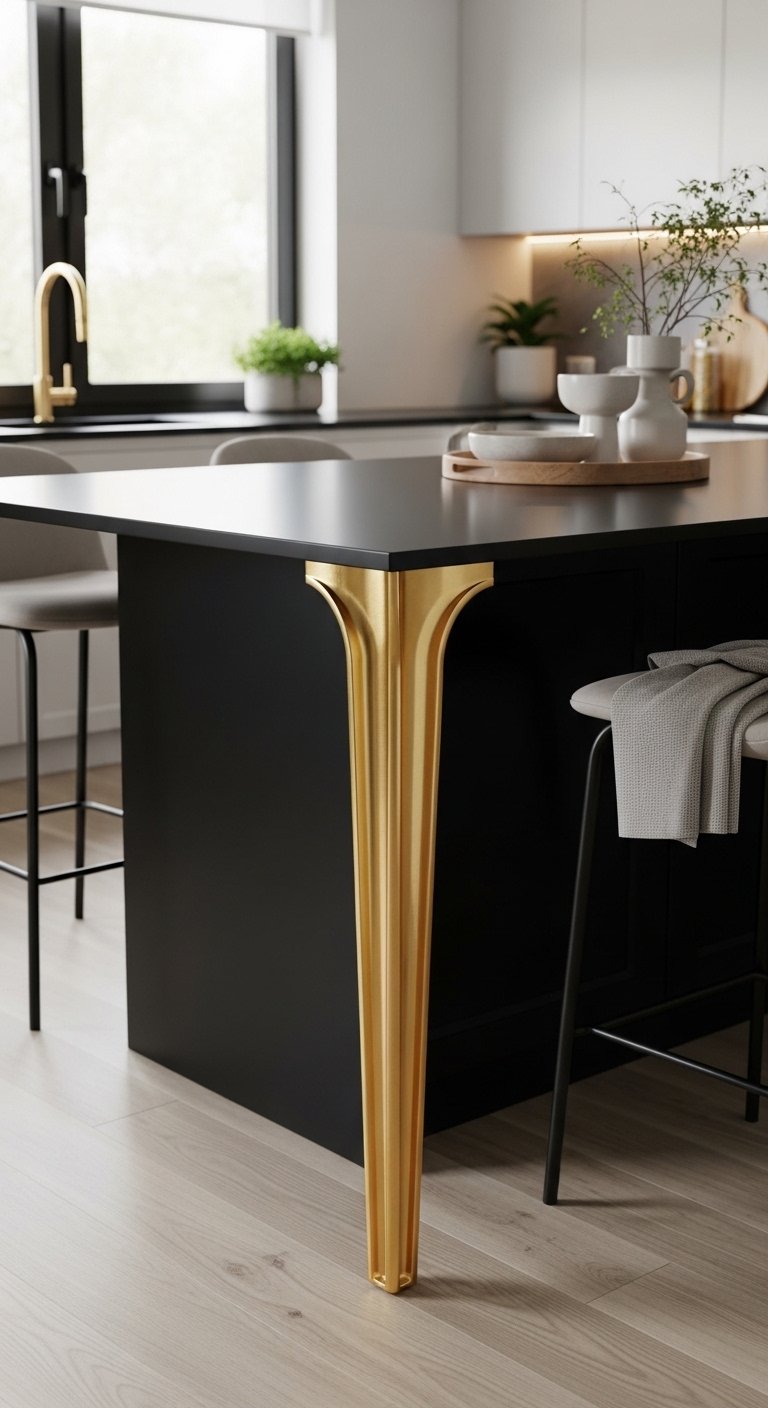23. Black Island with Gold Waterfall Legs for Sculptural Luxury Look