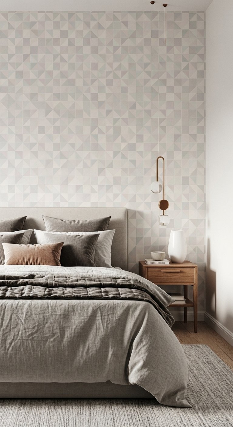 Instead of bold wall paint, incorporate patterned wallpaper to infuse color and personality. Consider floral prints, geometric patterns, or abstract designs in muted jewel tones or pastels. Wallpaper adds texture and visual depth while guiding the room’s overall color palette. Pair it with neutral furniture and bedding to prevent the pattern from overwhelming the space. Accent with metallics or velvet fabrics for added luxury. Patterned wallpaper is versatile: it can cover an entire wall or serve as a backdrop for a reading nook or bed. This approach allows adult bedrooms to feel lively, stylish, and Pinterest-ready, combining pattern, color, and texture for a curated, sophisticated look that’s both practical and visually inspiring.