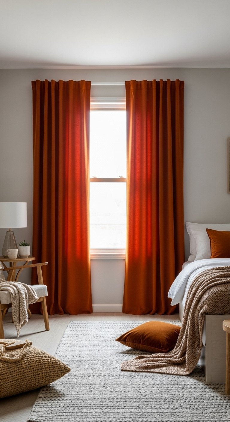 Window treatments are an often-overlooked source of color in adult bedrooms. Bold curtains or blinds in shades like burnt orange, deep teal, or fuchsia instantly change the room’s mood. Pair vibrant drapery with neutral walls and bedding to allow the windows to shine as focal points. Consider layering sheer curtains underneath for soft, diffused light that complements the bold color without harshness. Coordinating smaller accents—pillows, lamps, or art—reinforces a cohesive design. Using window treatments as a color anchor is practical, visually striking, and adds a Pinterest-worthy touch. It provides a dynamic way to bring personality, warmth, and sophistication into your bedroom without permanent changes, making it perfect for renters or those who like seasonal updates.