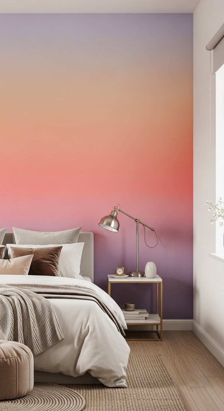 1. Sunset Gradient Accent Wall for a Serene Retreat
