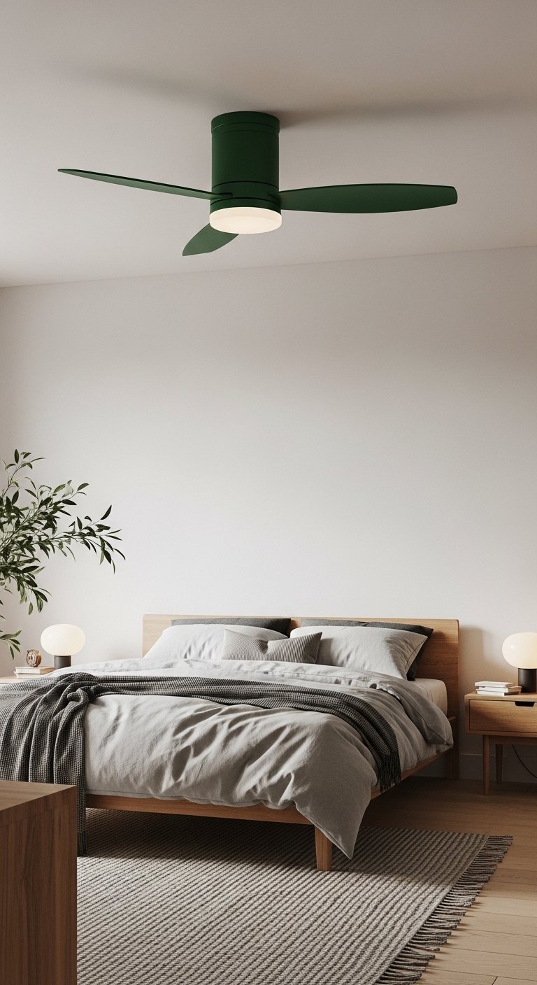 Turn functional fixtures into design highlights by selecting ceiling fans or pendant lights in bold, unexpected colors. A deep emerald fan, mustard yellow pendant, or cobalt chandelier introduces vibrancy overhead, drawing the eye and anchoring the room’s palette. Pair with neutral walls, bedding, and floors to avoid overwhelming the senses. Fixtures with glossy finishes or metallic accents reflect light, adding sparkle and enhancing visual depth. This approach is perfect for adults seeking a playful yet sophisticated touch. Not only does it elevate the room’s aesthetic, but it also allows functional elements to double as decorative focal points. Incorporating color in this often-overlooked way creates a Pinterest-worthy bedroom that feels curated, lively, and uniquely personal.