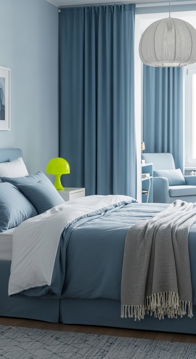 Create a cohesive bedroom by selecting one primary color palette—such as soft blues, gentle pinks, or muted greens—and layering different shades and textures throughout the room. This monochromatic approach ensures harmony, making the space feel intentional and calming. To add energy and modern flair, include a single neon accent, like a bright yellow throw pillow, hot pink lamp, or neon art piece. Neon provides an unexpected visual pop without clashing with the overall palette. Pair the layered colors with natural materials, such as wooden nightstands or linen bedding, to maintain warmth and balance. Soft lighting, like a floor lamp or string lights, enhances the subtle tonal transitions and creates a dreamy, cozy atmosphere. This strategy gives your bedroom a designer look: calm and cohesive with a playful edge, perfect for Pinterest-inspired adult spaces.