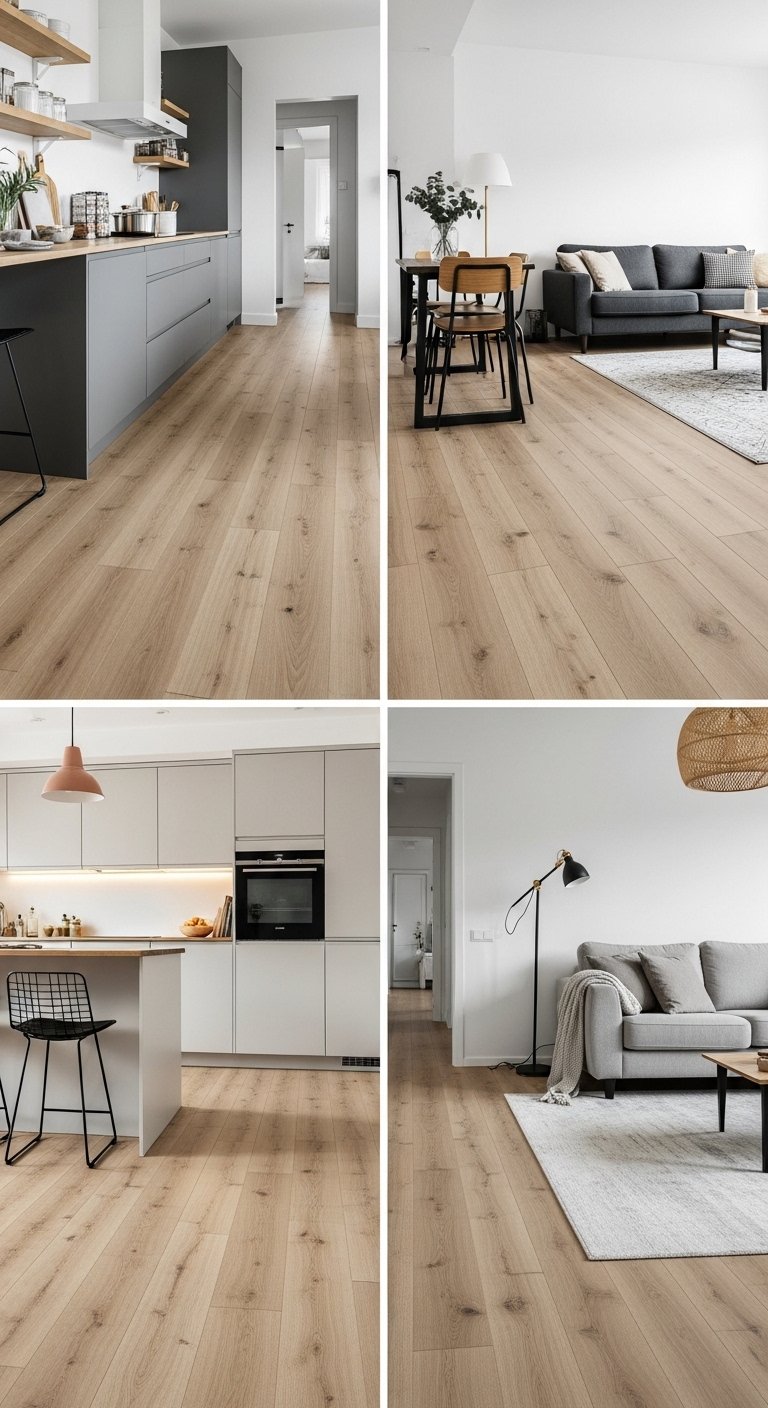 Using the same flooring throughout your open kitchen living room design helps the space feel larger and more connected. Choose one material like light wood, vinyl, or tile and run it across both areas.Avoid changing flooring styles between the kitchen and living room, as this can break the flow. Instead, use rugs or furniture placement to define zones if needed.Keep the finish light or neutral to reflect more light and make the room feel airy. Matte finishes work well because they hide wear and feel natural. This idea creates a smooth, uninterrupted look that makes your home feel bigger and more cohesive.