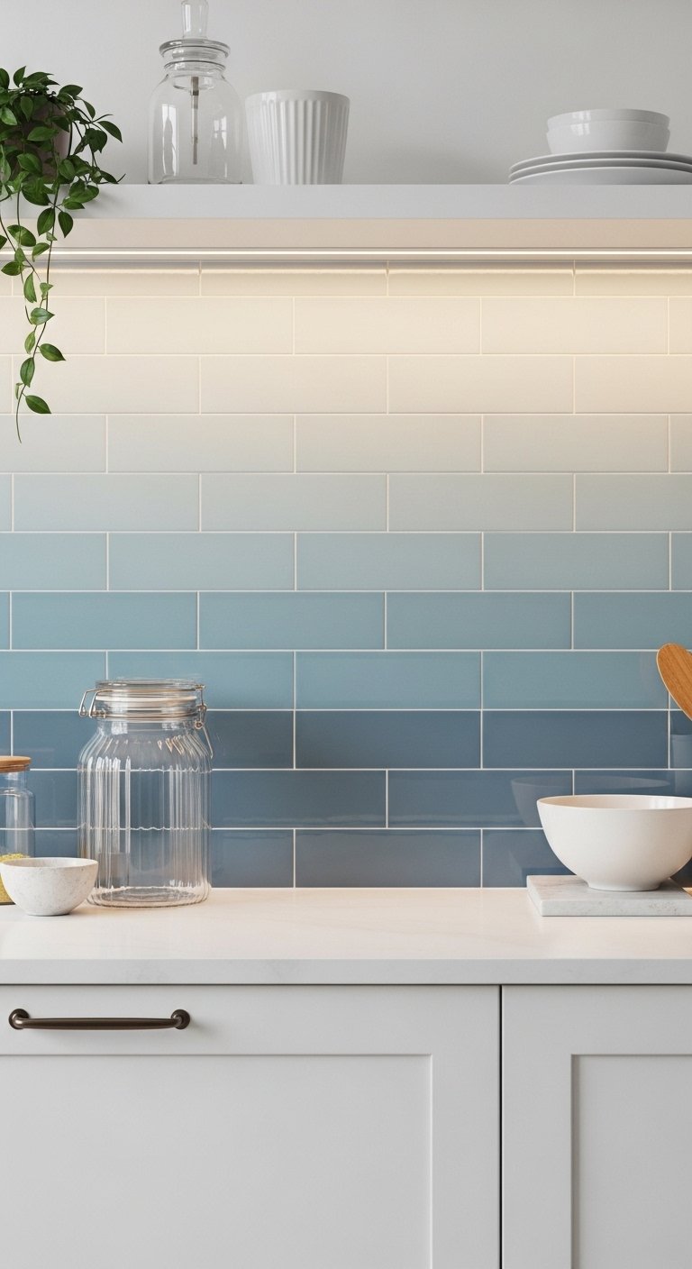 12. Soft Gradient Tile Backsplash for Subtle Color Transition