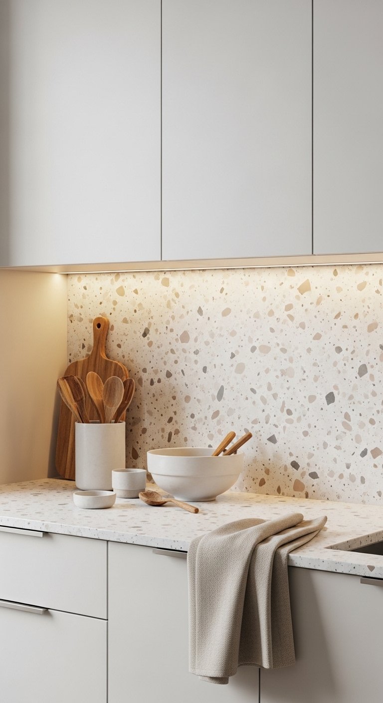 13. Terrazzo Backsplash for Playful Texture and Color
