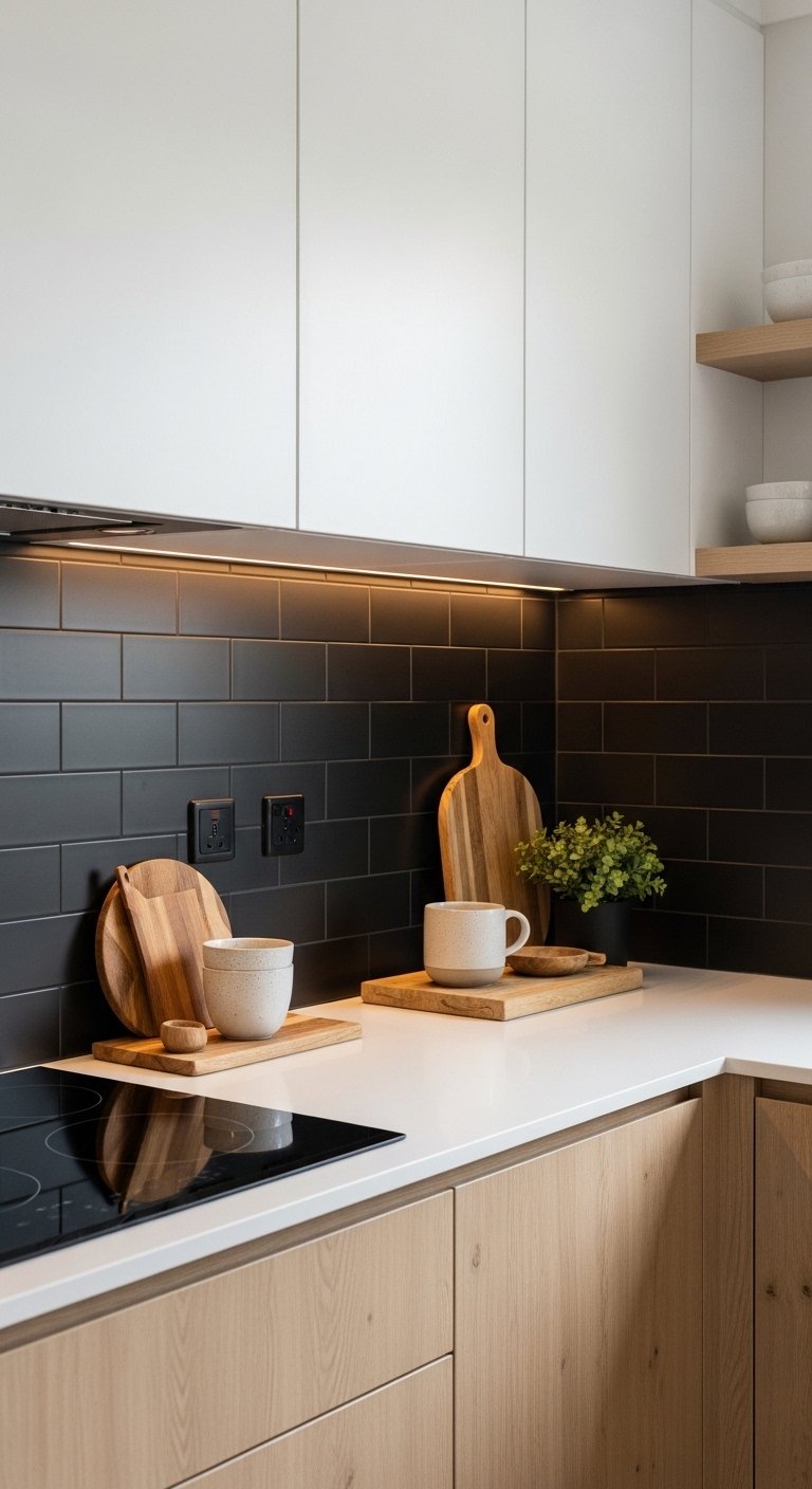 14. Matte Black Backsplash for Bold Contrast