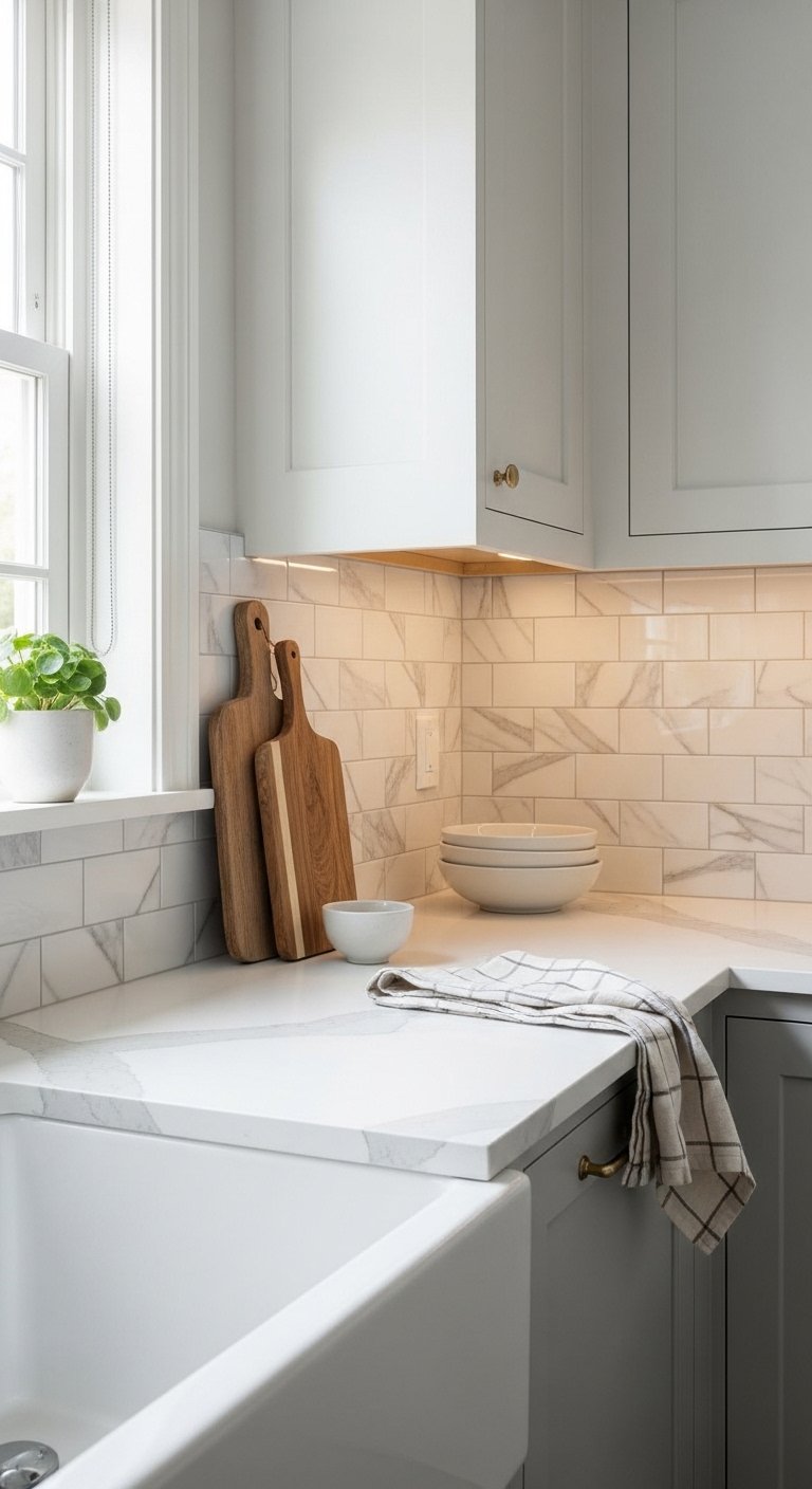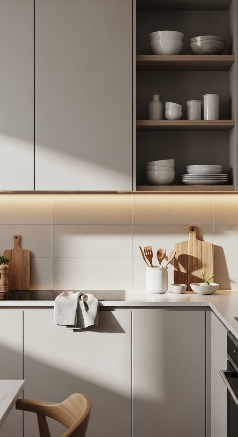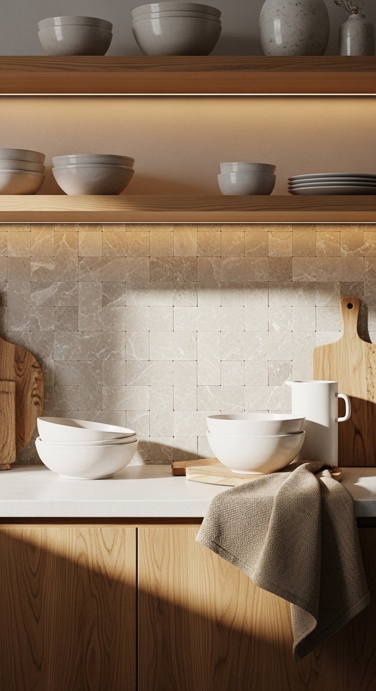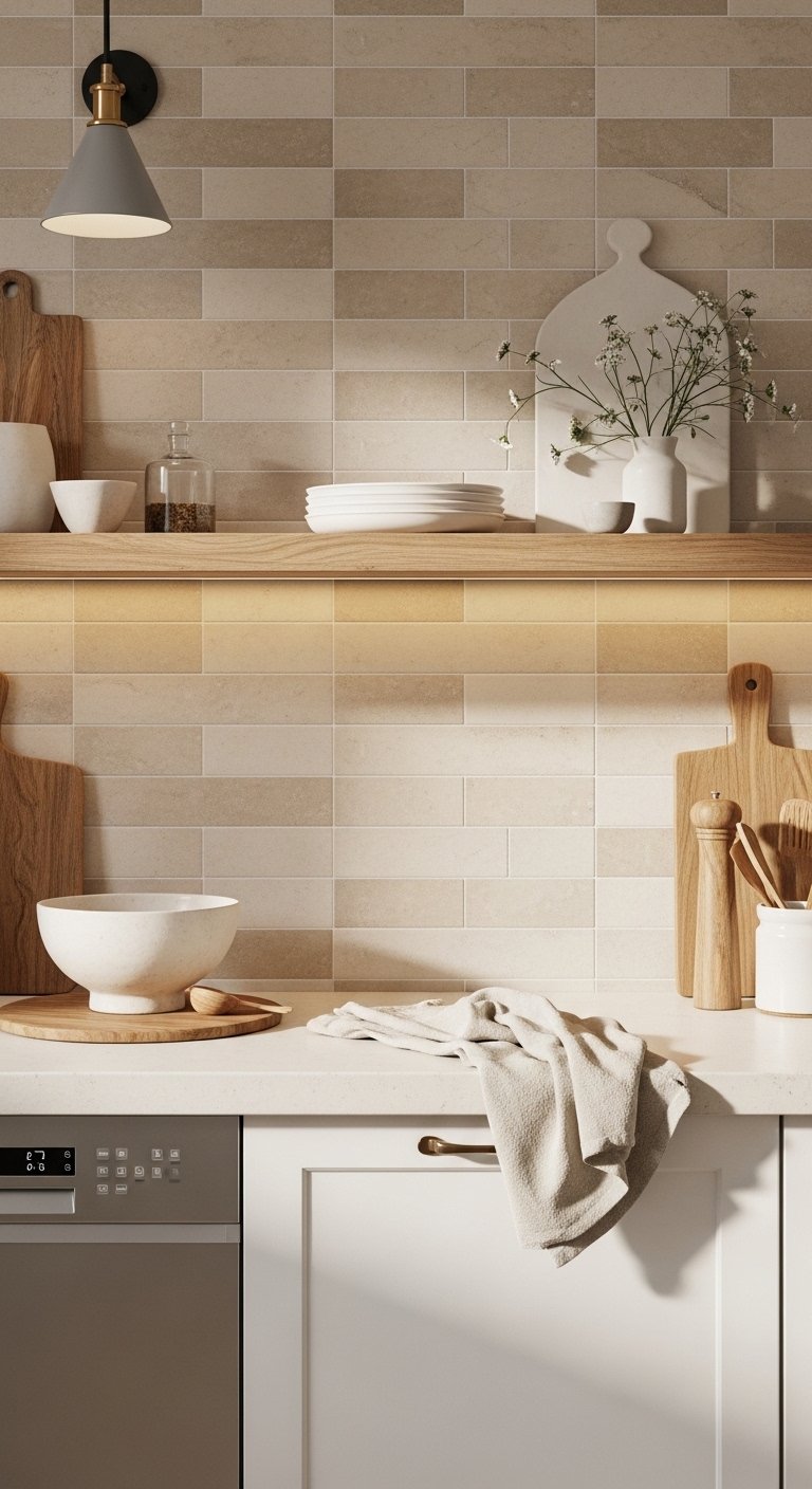 18. Warm Beige Backsplash for Soft Neutral Calm