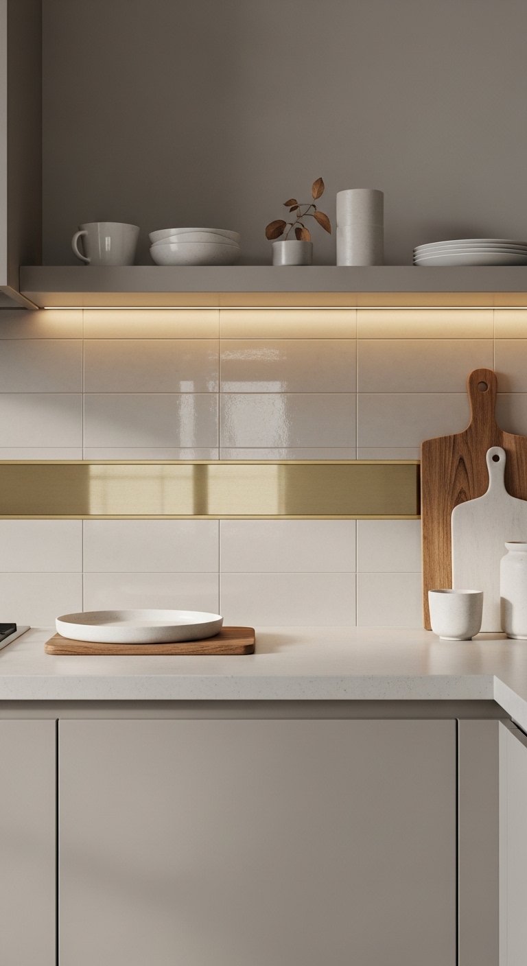19. Metallic Accent Backsplash for Subtle Shine