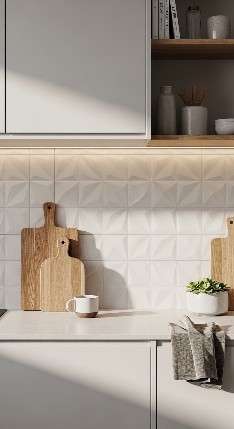 26. Textured 3D Tile Backsplash for Shadow and Depth