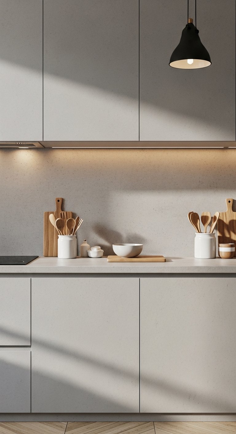 9. Concrete Look Backsplash for Modern Minimal Style