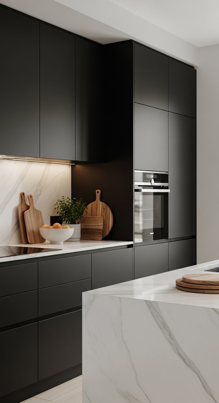 26. Black Cabinets with Minimalist Handles